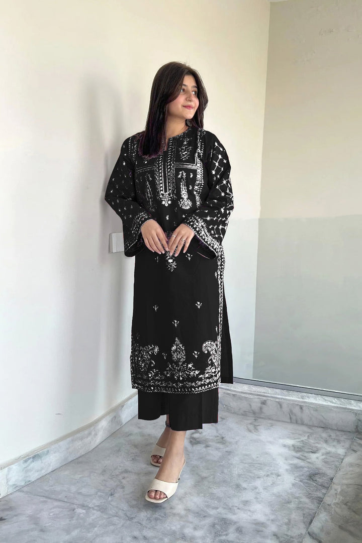 UMZ - BLACK - 2PC DHANAK EMBROIDERED UNSTITCH